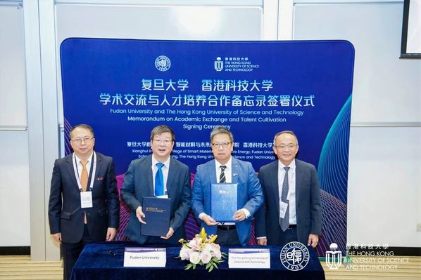 开幕式上,复旦大学相辉研究院、智能材料与未来能源创新学院与香港科技大学工学院共同签署学术交流与人才培养合作备忘录。根据备忘录,双方将就高水平学术交流、科研协同创新、产学研合作创新、青年人才培养等方面展开深入合作,重点聚焦化学能源、智能材料、人工智能等前沿交叉领域,建立常态化协同机制,共同打造“复旦-港科大相辉创新前沿国际论坛”等品牌学术活动,并推动教师互聘、科研平台共享等。
