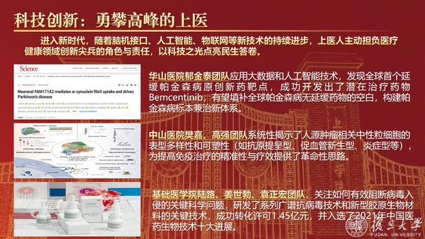 “病亦新兮,医亦日进”,上医始终心怀忧患意识,锐意进取,持续创造出国内众多“第一”。近年来,上医在学科建设与科技创新领域持续取得突破性进展,科研成果不断转化,为百姓健康提供更好服务,以科研成果亮点担负起医疗健康领域创新尖兵的责任,点亮民生答卷。