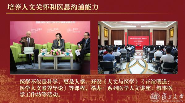 前辈的事迹感召着上医人,汤钊猷院士将毕生成就总结为“两件半事”,“中国式抗癌”挽救了无数肝癌患者的生命,闻玉梅院士把国家支持、人民需要作为科研持之以恒的动力,是复旦学子“心目中的好老师”“心目中的好导师”。进入新时代,复旦上医依托综合性大学办医学院的优势培养一流人才,2019年以来,上医获得“医学界”中国医学院校人才培养排行榜“七连冠”。