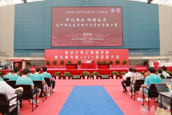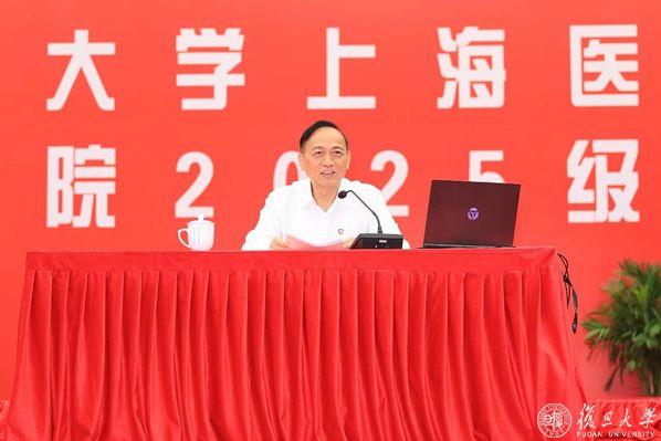 9月14日上午,复旦大学党委副书记、上海医学院党委书记袁正宏为复旦上医2025级本科新生讲授爱国荣校教育课。