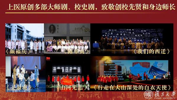 通过“奋斗上医”“活力上医”投身社会大课堂,激发“强国有我”奋斗激情,繁荣校园文化。近年来,师生共创并排演了《颜福庆》《陈翠贞》《王淑贞》《我们的西迁》《山河无恙》《行走在大山深处的白衣天使》等多部大师剧和校史剧,在“美遇枫林”系列活动中感受校园活力,通过参与博医团科普分团等各项社会实践活动,培养社会责任感和奉献精神。