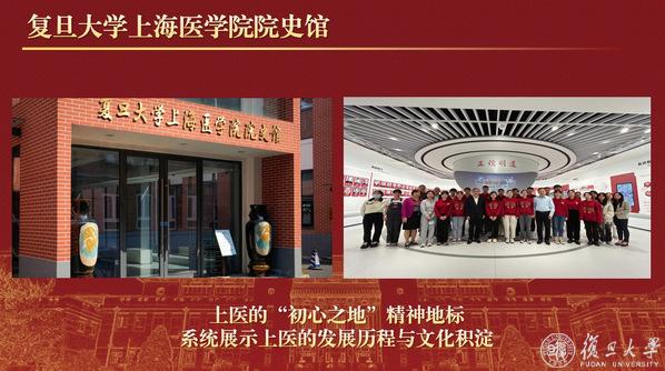 通过“明道上医”“人文上医”坚定理想信念,筑牢思想之基。在复旦大学120周年校庆纪念大会上,上医学生作为学生代表,分享了以科研连接生命与希望的动人故事;上医文化中心与院史馆里,学生志愿讲解员系统展示上医的发展历程与文化积淀,在上医的精神地标中传承初心;此外,学校通过开设《人文与医学》等课程,开展宣讲微课程比赛、国庆升旗等活动,培育人文关怀、传递上医精神。