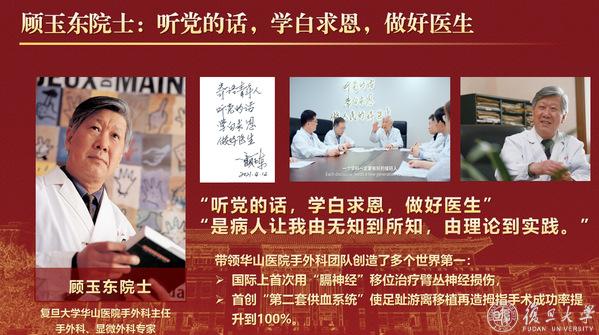 顾玉东院士用一生践行“听党的话,学白求恩,做好医生”的信念,带领华山医院手外科团队创造了多个世界第一,他经常说:“是病人让我从无知到有所知,由理论到实践。”