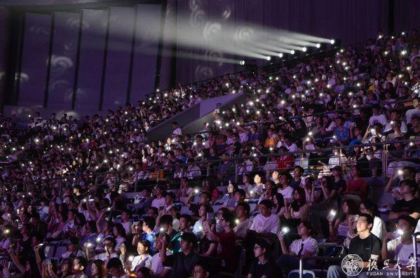 新生辅导员代表分享从舞台到讲台的转变,“以后的路不再有痛苦,我们的生活会有多酷。”她用歌词寄语愿每位新生在复旦书写独家记忆。