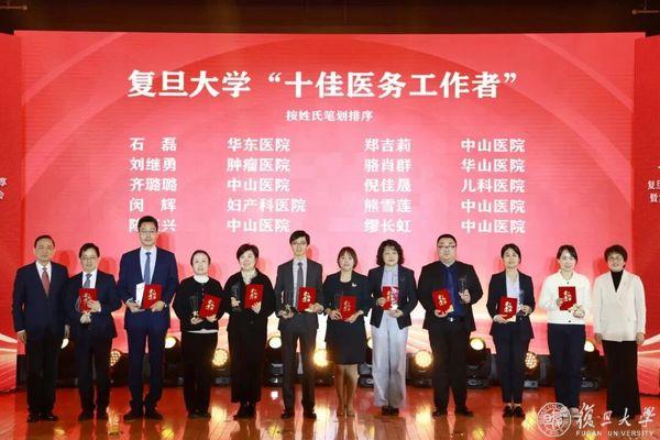 倪佳晟(右四)获2023年度复旦大学“十佳医务工作者”