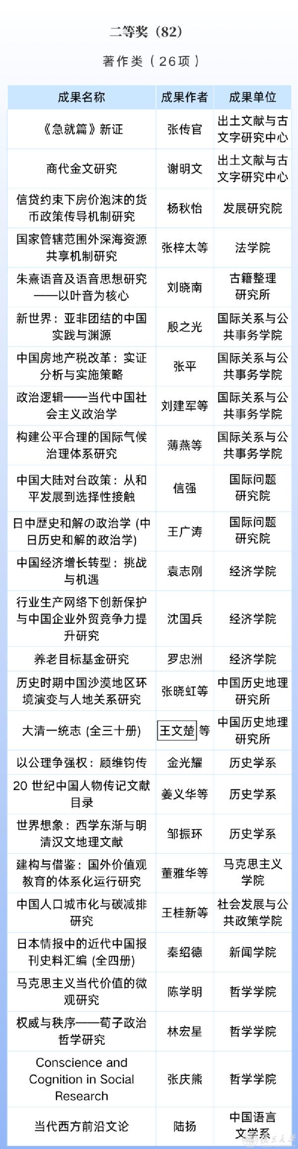 学校高度注重“老中青”三代学术接力,以“传帮带”的方式科学规划、有序统筹学术研究和人才培养。一方面,以融合创新研究,在促进“两个服务”的能力提升中,产出一批高质量理论创新成果,如《过上好日子:新时代中国特色社会主义的发展逻辑》《贫困治理的渐进平衡模式:基于中国经验的理论建构与检验》;另一方面,以绝学绝技的锻造,在传承创新中华优秀传统文化中,产出一批高水平文化学术精品,如《从古汉语中 “善” 的用法谈到<老子>中的 “善”》《明代诗学思想史》。