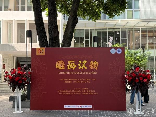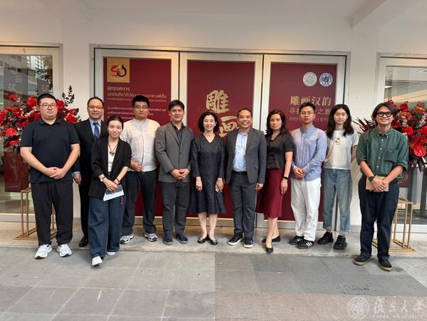 在中国与泰国建交50周年之际,10月3日,复旦大学数字艺术中心与泰国艺术大学建筑学院、装饰艺术学院、音乐学院联合主办的数字艺术展“雕画汉韵:寻找汉梦之旅”在泰国艺术大学开幕。本次展览以数字技术为桥梁,带领观众进入“汉梦空间”,开展跨越千年的艺术与思想对话,这不仅是中国数字人文领域的创新实践,更是两国建立深厚友谊的生动见证。