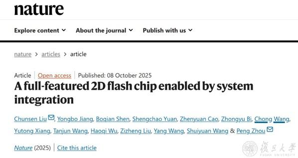 相关研究成果以《全功能二维-硅基混合架构闪存芯片》(A full-featured 2D flash chip enabled by system integration)为题,于北京时间10月8日晚间在《自然》(Nature)期刊上发表。