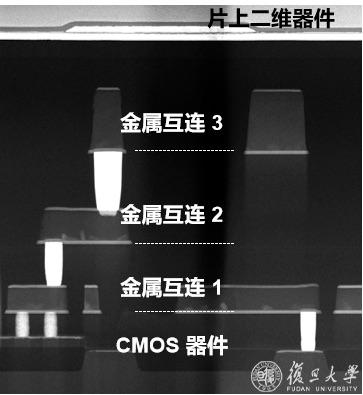 “我们没有必要去改变CMOS,而需要去适应它。”团队决定从本身就具有一定柔性的二维材料入手,通过模块化的集成方案,先将二维存储电路与成熟CMOS电路分离制造,再与CMOS控制电路通过高密度单片互连技术(微米尺度通孔)实现完整芯片集成。