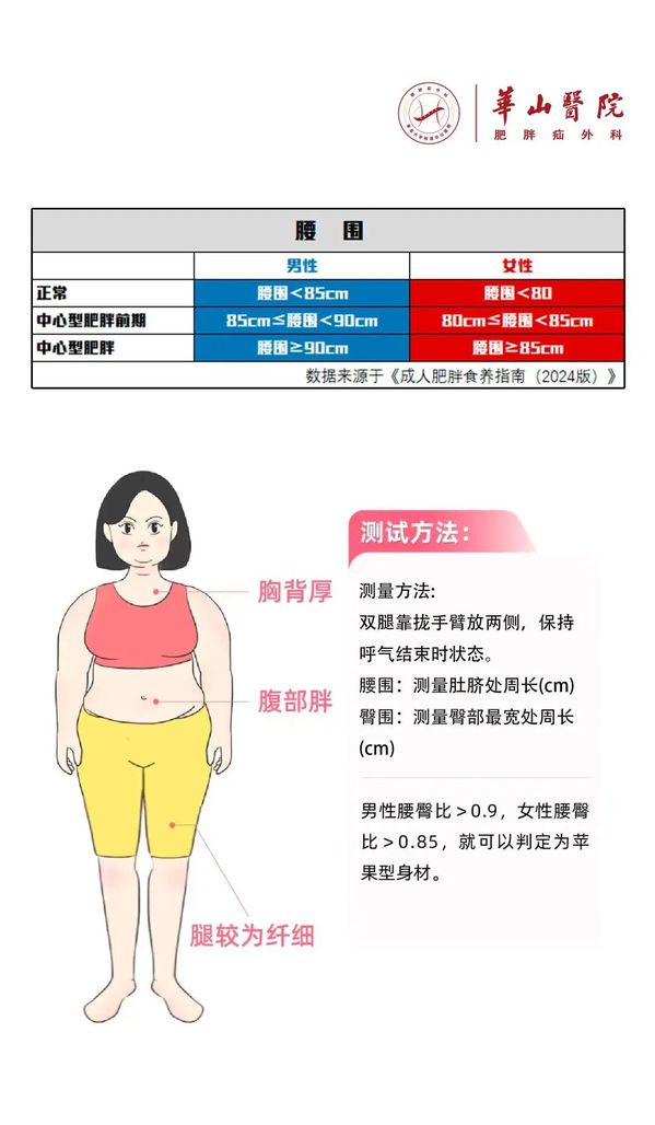 医学上以体重指数(BMI)和腰围为关键指标: