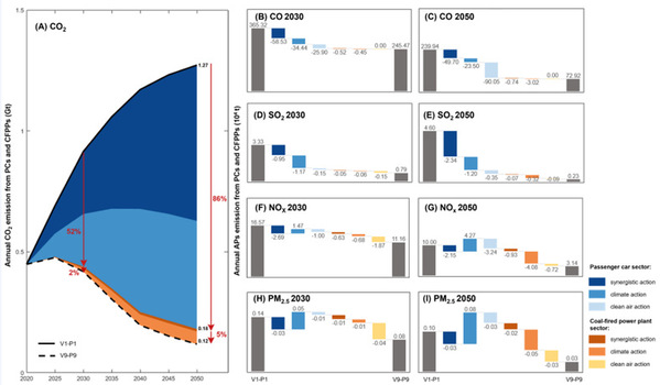 研究团队将动态车队演替模型与全球变化评估模型(GCAM)中的电力系统规划模块相耦合,构建了一个针对中国乘用车与电力部门的跨部门气候政策影响综合评估框架,系统评估车队和煤电厂的排放时空变化。