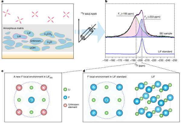 9月10日,智能材料与未来能源创新学院孙大林、宋云团队与西湖大学向宇轩、朱一舟团队合作,通过固态核磁共振(NMR)、同步辐射X射线衍射(SR-XRD)、冷冻电子显微镜(cryo-EM)技术首次确定了SEI中存在LiF-LiH固溶相。研究成果以“Probing the heterogeneous nature of LiF in solid-electrolyte interphases”为题,发表于Nature。