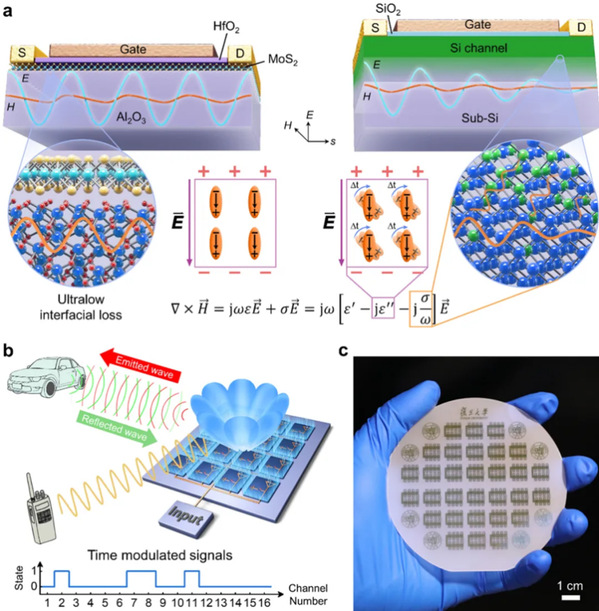9月2日,集成电路与微纳电子创新学院周鹏、马顺利、包文中团队在国际上首次实现晶圆级二维全集成微波发射机系统的原型验证,并从麦克斯韦方程组出发揭示了射频波段原子界面超低损耗传输机制,开拓了二维射频电子学的颠覆创新领域。相关成果以“Integrated two-dimensional microwave transmitters fabricated on the wafer scale”为题,发表于Nature Electronics。