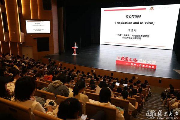 10月21日下午,复旦大学基础医学院教授汤其群以《初心与使命》为题,在复旦大学相辉堂为670余名2025级医学专业本科新生带来一堂内涵丰富、思想深刻的“强国之路”思政大课。课程围绕医学本质、历史发展、技术革新与医者使命层层展开,引导学生在科学与人文的双重维度下,深入理解医学的深厚内涵与时代责任。