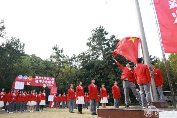 10月27日上午,复旦大学第八届进博会志愿者出征仪式在邯郸校区举行,志愿者们在国旗下庄严宣誓。