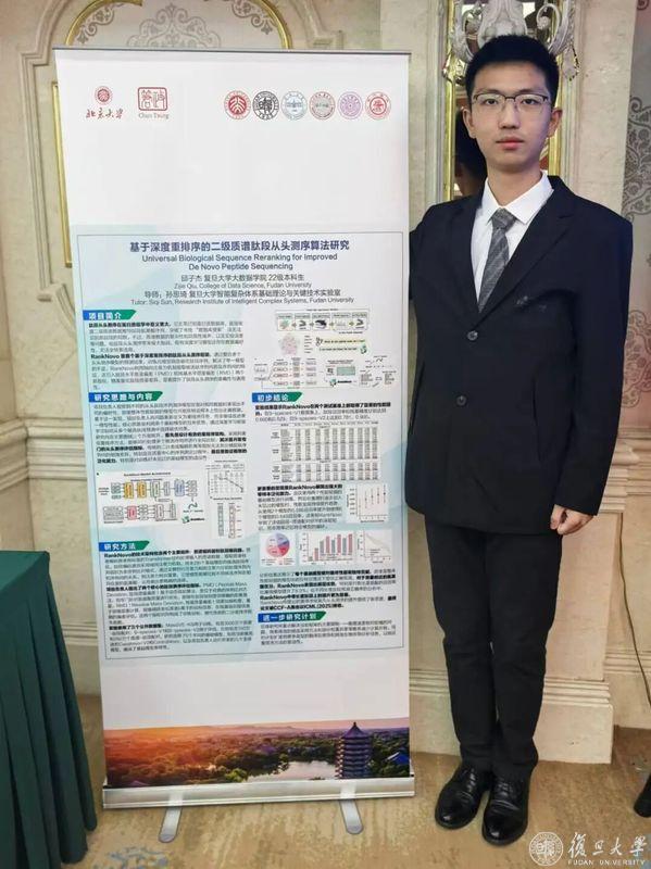 邱子杰的科研之路,始于大二时参与的“复旦大学本科生学术研究资助计划”(以下简称“复芏计划”)。他的䇹政项目“基于深度学习的二级质谱肽段从头测序”,是一个对蛋白质组学研究至关重要的AI for Science(AI4S)课题。