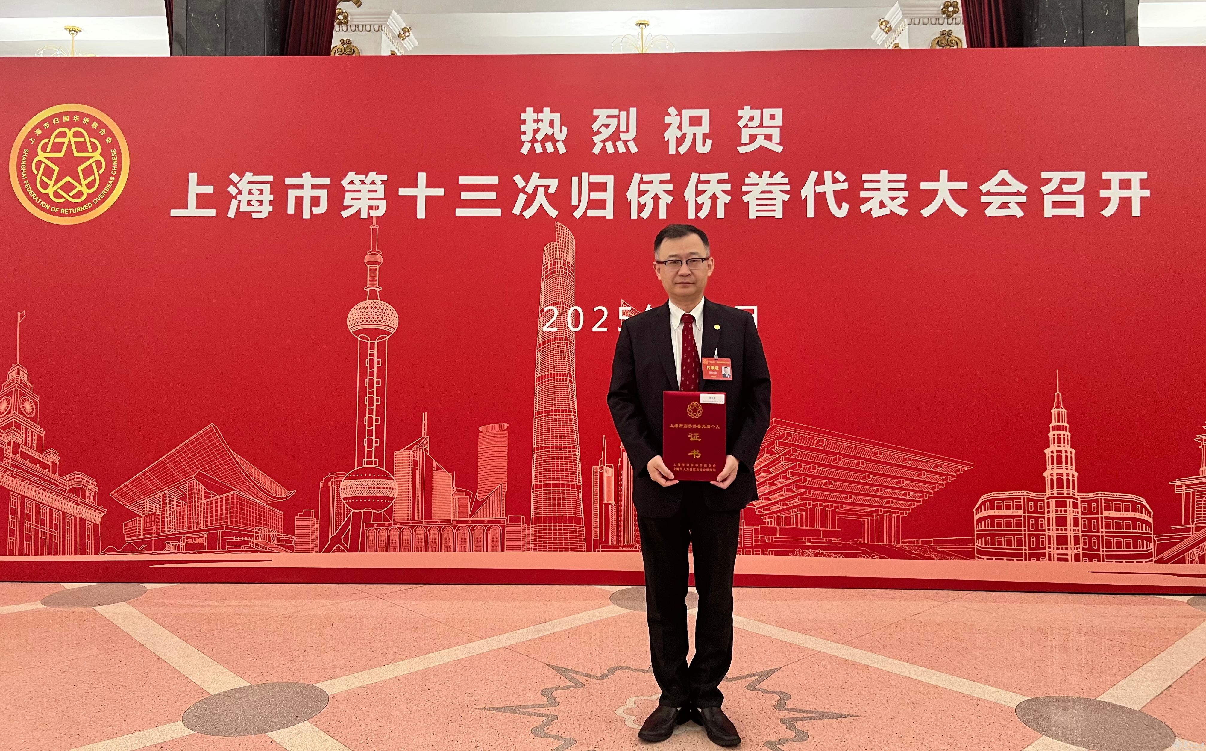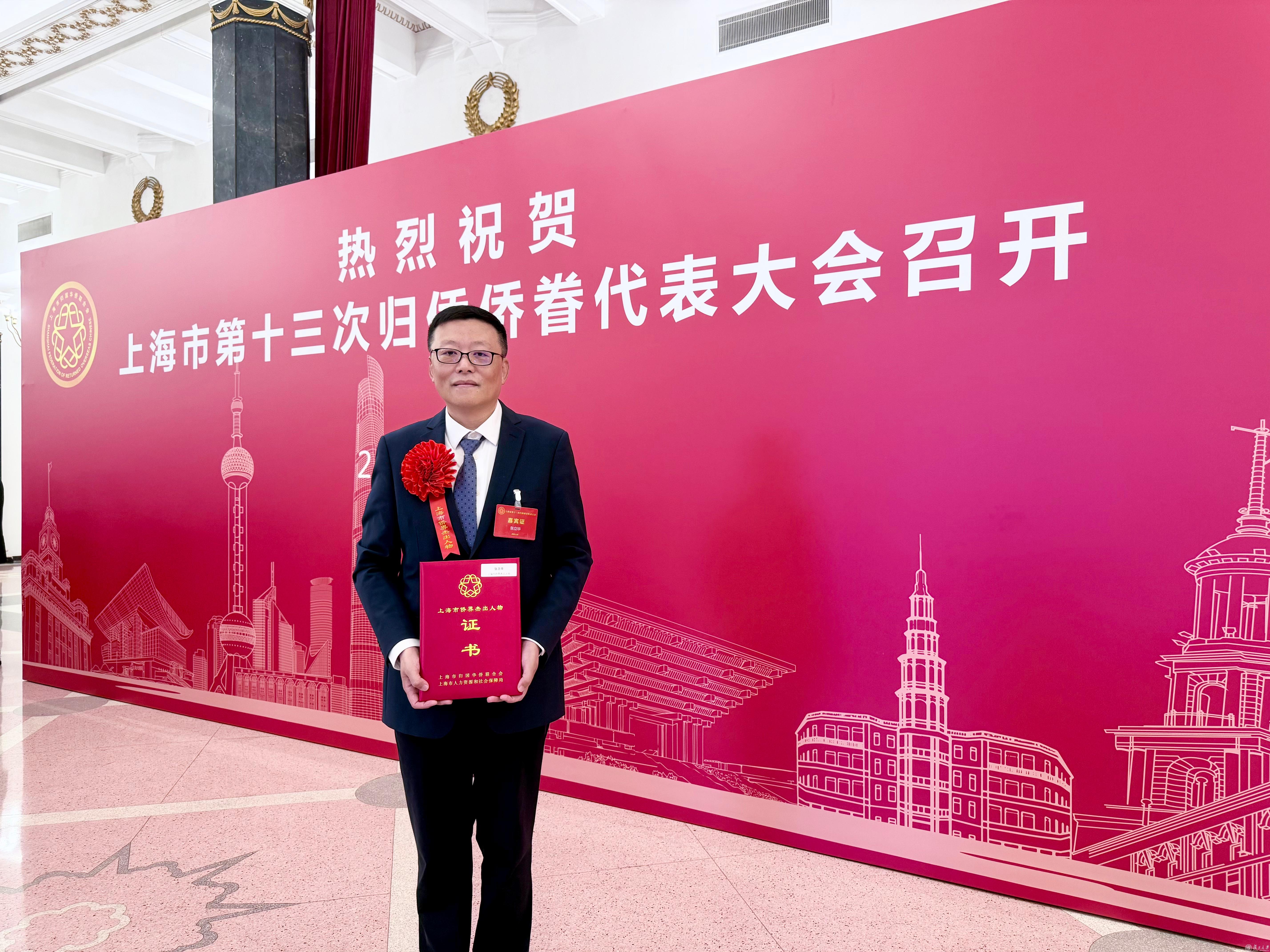 复旦大学张立华教授荣获上海市侨界杰出人物称号,徐丰、陈向军教授荣获归侨侨眷先进个人称号。