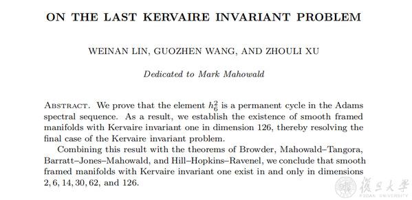 王国祯与合作者攻克Kervaire不变量问题论文