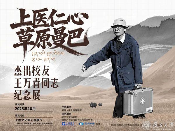 2025年10月,“上医仁心 草原曼巴——杰出校友王万青同志纪念展“来到上医文化中心。展览共分为“浦江赤子 草原医魂”“志在远方”“汉藏情缘”“风雪兼程”“医者无疆”“上医薪火”“精神永传”七大板块。