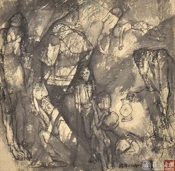 遗孤——矿工图之六手稿,周思聪,22.3×22.7cm,水墨稿,1980年,北京画院藏。