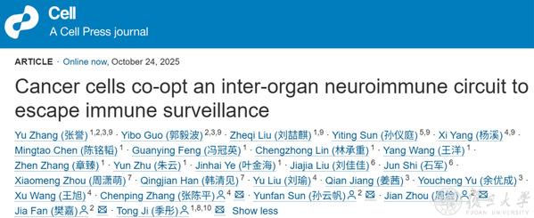 樊嘉/季彤/周俭/孙云帆合作揭示肿瘤利用神经介导的跨器官通讯实现免疫逃逸