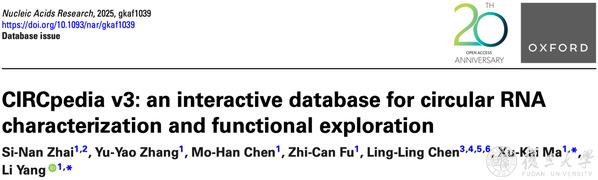 2025年10月22日,复旦大学生物医学研究院/复旦大学附属儿科医院杨力团队在《核酸研究》(Nucleic Acids Research)在线发表了题为“CIRCpedia v3: an interactive database for circular RNA characterization and functional exploration”的论文,报道了升级版的环形RNA数据库CIRCpedia,系统性整合了来自20个物种的2413个RNA测序样本,覆盖了203种组织类型和375种细胞系以及多种亚细胞组分,注释了超过260万个环形RNA。该成果为环形RNA研究提供了涵盖表达鉴定、功能预测到实验验证设计的一站式综合数据资源平台,为环形RNA领域的深入研究提供了有力的数据基础和技术预测支撑。