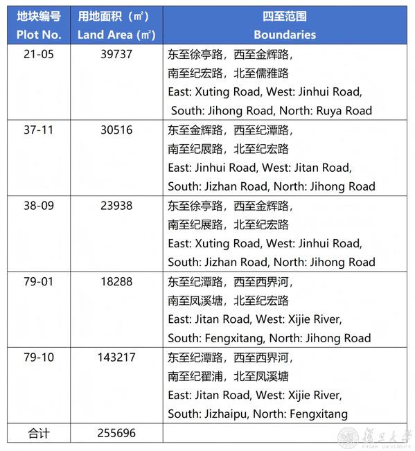 园区建设用地各地块四至范围及用地面积表