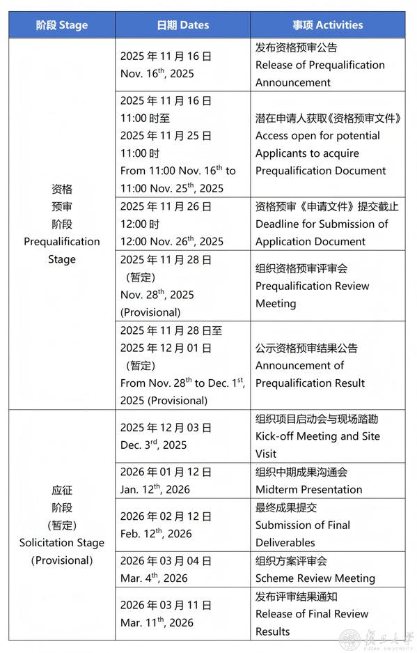 资格预审阶段、应征阶段时间节点初步安排如下:
