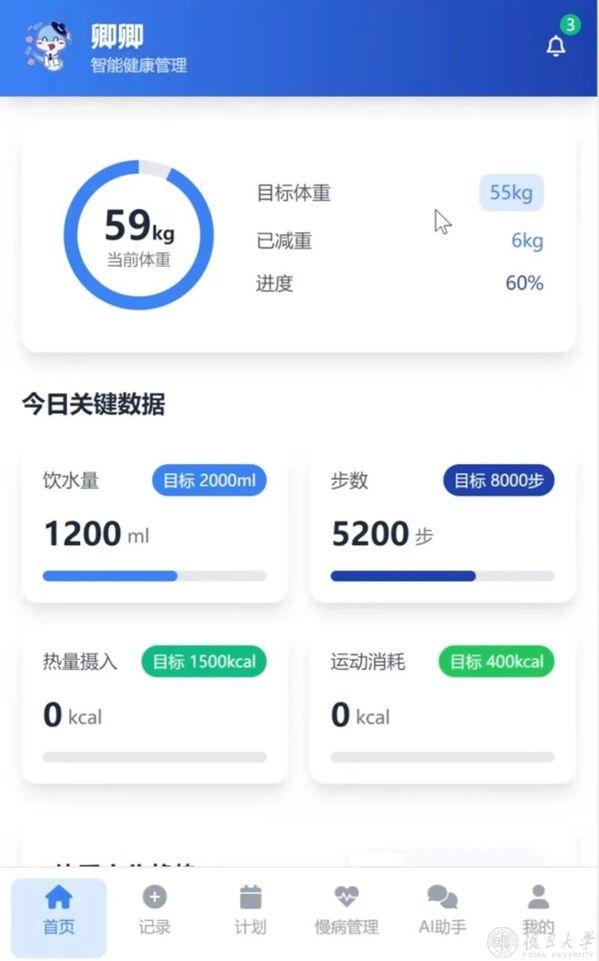 项目灵感源自他们在书院组织“健康体重管理月”活动时的观察。“很多同学虽有健康知识,却难以转化为持续行动。”郭奕玮发现,市面上的健康App大多缺乏个性化和情感陪伴。于是,他们决定打造一个“懂我”的AI健康伙伴。