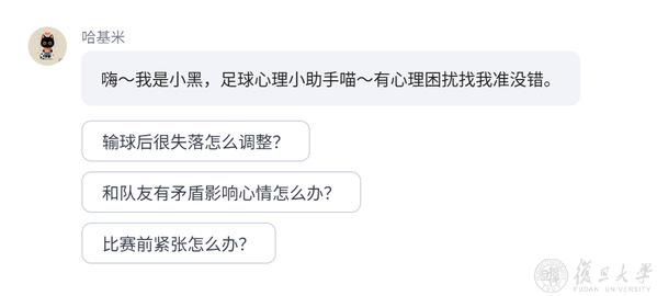同样从自身经历出发的,还有复旦女足高水平运动队的同学们。她们开发的AI心理疏导智能体“哈基米”,精准切中了运动员群体面临的心理焦虑。“在一支竞技体育的队伍里,主力队员可能明天就变成替补,这种情况下队员就很容易产生心理焦虑。”团队负责人、文物与博物馆学系2023级本科生陈诗雅分享了项目开展初衷。