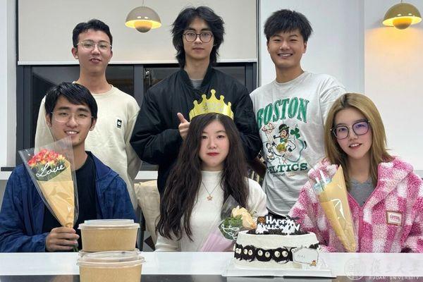 团队庆祝点睛AI产品雏形诞生暨团队成员丁闻玥生日(上排从左往右:卢子诚、赵康西、霍畅;下排从左往右 张明涵、丁闻玥、方子嫣)
