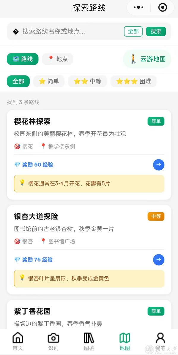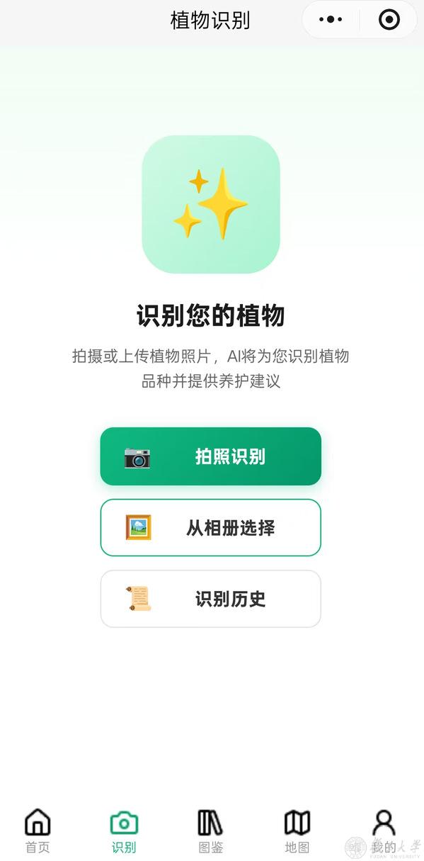 “我们都没有很强的AI和代码基础,全凭对植物的热爱以及在创变营课程中学到的知识,一步步摸索完成项目。”本草心社“灵犀草木”团队队长、历史学系2024级本科生张文涛说。他们的成果是一款名为“植导”的微信小程序。在校园里遇到不认识的植物时,需拿出手机,俯身拍下、上传,即可识别,并获取融合校园历史与文化的特色介绍。
