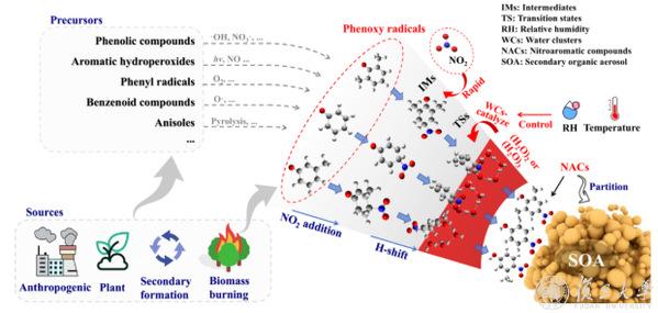 10月8日,环境科学与工程系陈建民团队联合多家单位研究揭示:空气中的微小水分子水簇能促进某些关键反应更易发生,生成硝基芳香物二次有机气溶胶。相关研究成果以“Atmospheric water cluster–catalyzed formation of nitroaromatics as a secondary aerosol source”为题,发表于Science Advances。