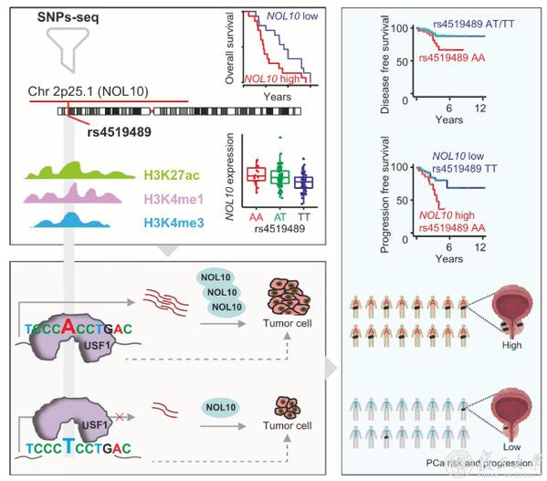 图 rs4519489–USF1–NOL10调控轴驱动前列腺癌进展的模式图