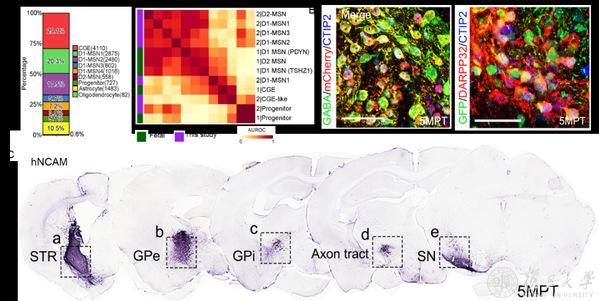 研究首次建立了人多能干细胞高效定向分化为纹状体中型多棘神经元亚型的三维悬浮培养新技术,分化的细胞在分子特征上与胎脑内源神经元高度相似;移植实验进一步证实,这些来源于人多能干细胞的MSN亚型能够在结构与功能层面整合入亨廷顿病模型小鼠的基底神经节环路的直接通路和间接通路,显著改善HD小鼠的运动功能障碍。