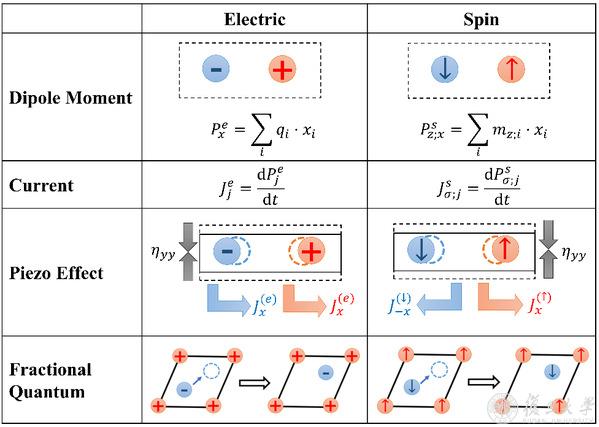 图 自旋偶极矩、压自旋效应和分数量子铁电性的概念示意图