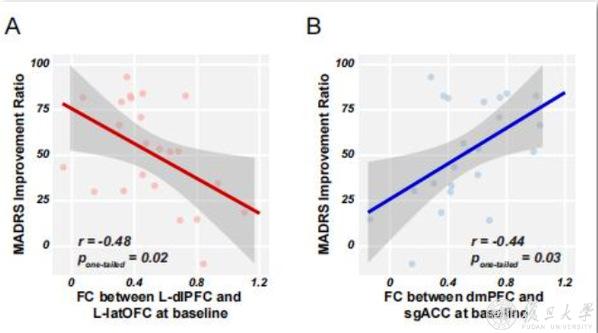 图 基线期功能连接与治疗结局关联结果