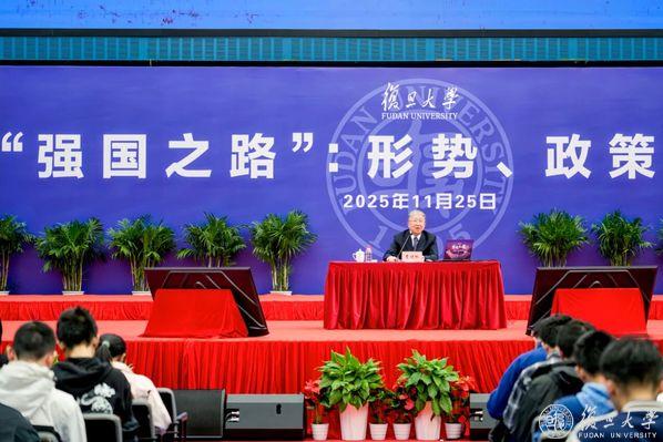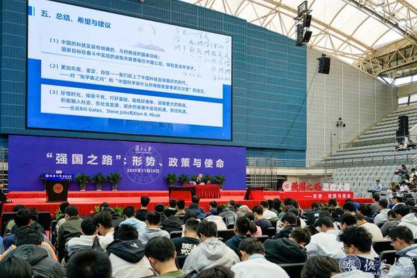 一段简单的开场白后,本学期“强国之路”思政大课迎来收官之讲。“我要讲的题目,叫《从‘不挨打、吃饱饭’到‘富起来、强起来’——结合个人经历的中国科技发展道路之回顾与展望》……”曹健林的话音落下,一段中国跨越式的科技发展历程便在新生面前徐徐展开。作为亲历者与见证人,他的讲述让这段历史变得具体而真切。复旦大学党委副书记钱海红和相关单位负责人出席。