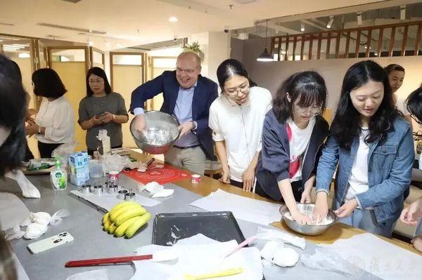 为了带给学生沉浸式跨文化体验,荣格还曾在北区食堂向学生讲授英式点心司康的地道做法。闲暇时,他喜欢做些很“中国”的事,比如去杭州茶园采摘龙井、体验炒茶,去广东欣赏清代贝雕,以及去到中国各地民俗馆,体验不同的风物民俗。