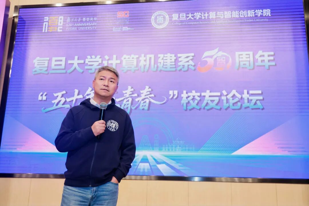 10月18日下午,复旦大学计算与智能创新学院在邯郸校区逸夫科技楼举行了“计算机建系五十周年——五十年·正青春”校友论坛。此次论坛汇聚了线上线下十四位来自不同时期的校友代表,共同回顾学院五十年的发展历程,交流在各自领域的前沿思考,展望AI时代学院的创新与未来。
