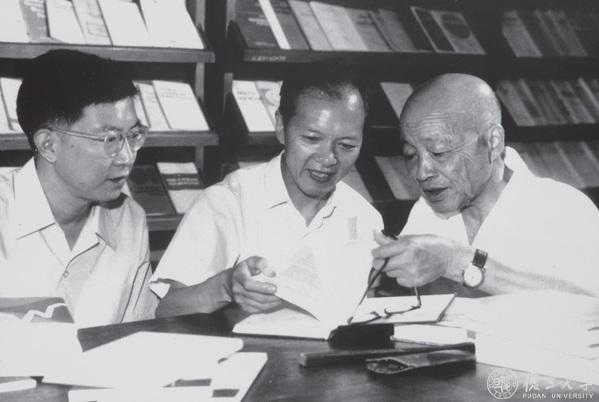 与苏步青(右)、谷超豪(中)二位老师(1978)
