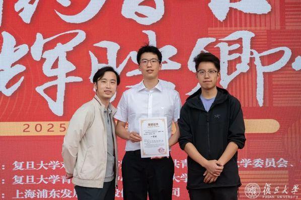 荣获复旦大学“卓越杯”一等奖后,张一弛(中)和成员合影留念