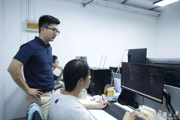 朱静逸(左边)与团队成员调试代码