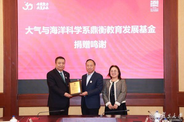 校董李多珠捐赠1亿元设立复旦大学大气与海洋科学系鼎衡教育发展基金,用于支持大气与海洋科学系加强深远海科技能力建设,探索有特色的向海图强道路,推动复旦地球科学发展,为建设海洋强国和应对气候变化等国家战略贡献力量。