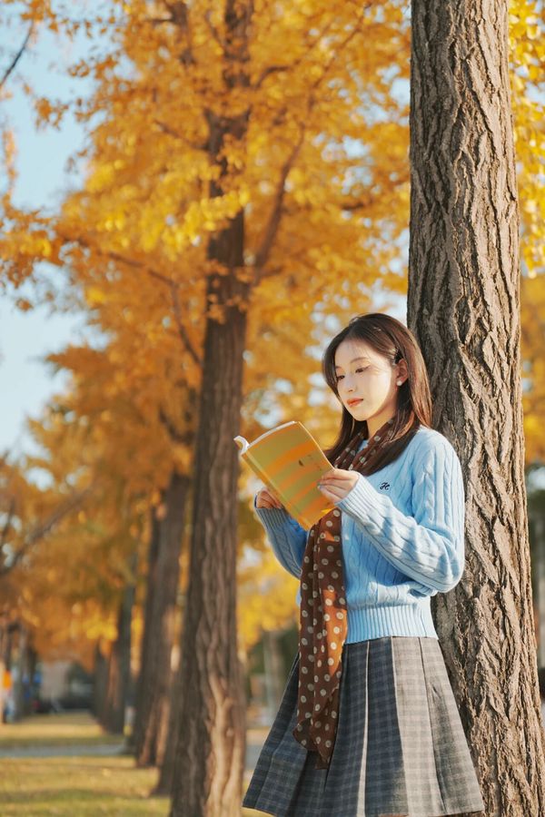 光影在玻璃上叠出双份秋意,连林荫道的车辙都裹着金箔般的碎光。学子夹着书卷走过,衣角沾着叶影,扉页落进一片金黄。