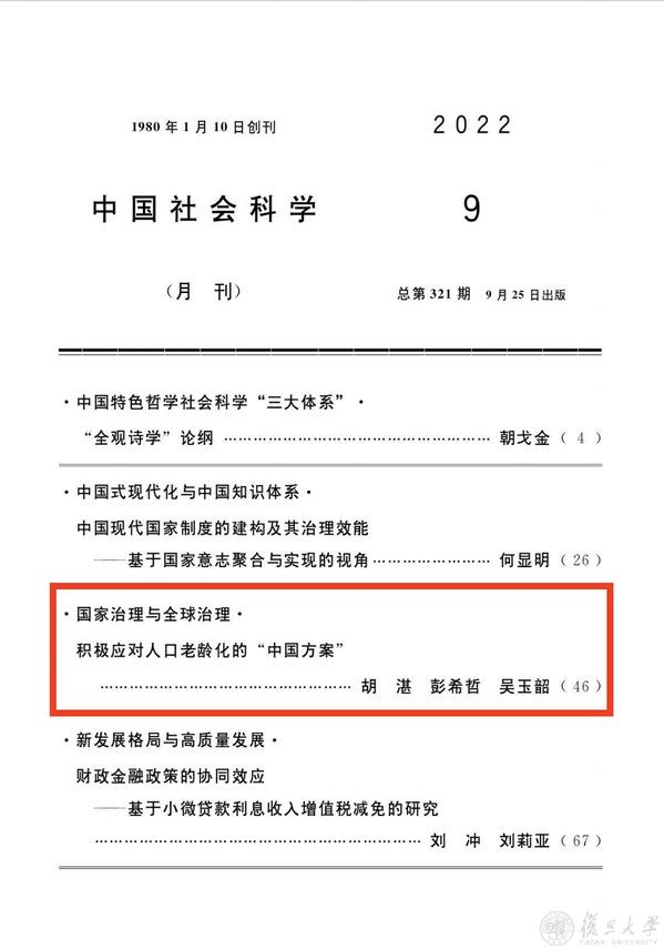 在“人口与社会发展”领域,学院深耕人口政策、老龄化应对、人口迁移与城市化等关键议题,相关研究居于国内引领地位。彭希哲、胡湛教授团队基于中国家庭历史变迁分析,为构建发展型家庭政策提供框架性建议。针对人口老龄化进程特点,提出“身—家—群—国—世”整体性治理格局,形成积极应对老龄化的“中国方案”,相关研究屡获重要奖项。