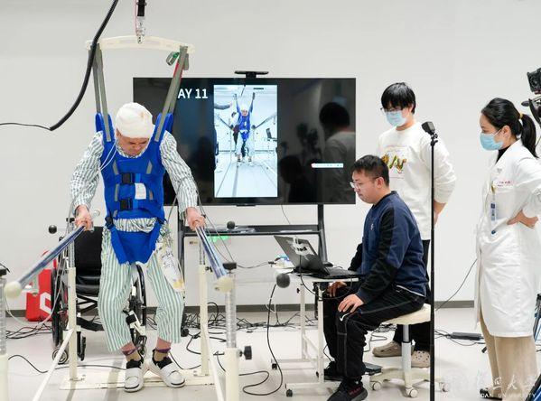 比如说有没有可能让患者在术后一个月,他躺着进来,站着出去?术后经过两周到一个月他就可以不仅在重力悬吊下走路,如果去掉重力训练,他也能走?这个技术如果有希望,在未来半年到一年我们就要推进。