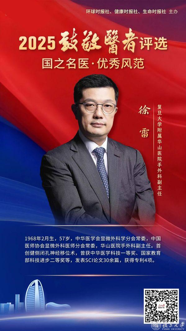 近日,由人民日报社属环球时报社、健康时报社、生命时报社共同主办的“2025致敬医者评选”荣耀揭榜,189位医者入选“国之名医”系列榜单。其中,复旦上医9位专家榜上有名!