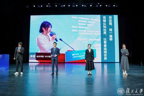 典礼现场,4位获奖学生代表以“新知无界 青年有为”为主题,分享他们在复旦求索历程与成长故事。