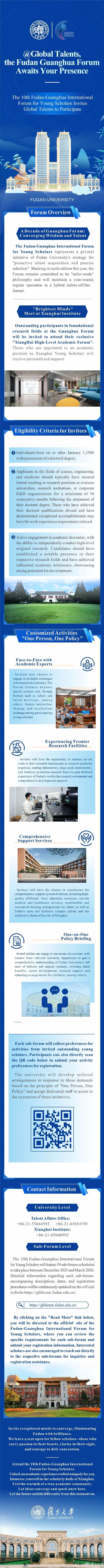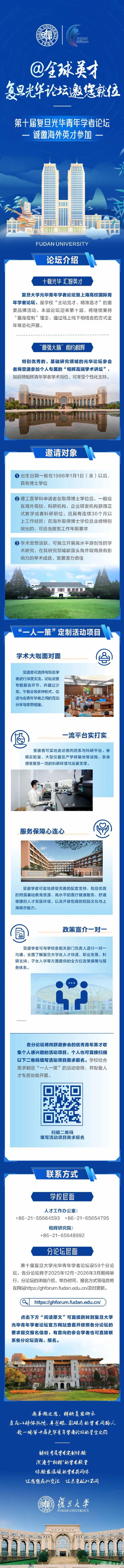 复旦大学光华青年学者论坛暨上海高校国际青年学者论坛,是复旦“主动觅才、精准选才”的重要品牌活动,自2016年起已举办八届。论坛汇聚了一大批学术水平高、创新能力强、发展潜力大的优秀青年人才,其中不少入选国家战略人才计划,论坛也已成为学校引才育才、服务国家的重要平台。